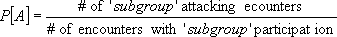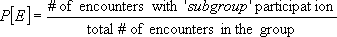 all encounters in a group, where an animal of a specific subgroup (i.e.