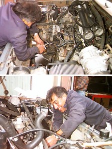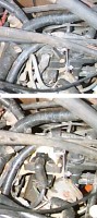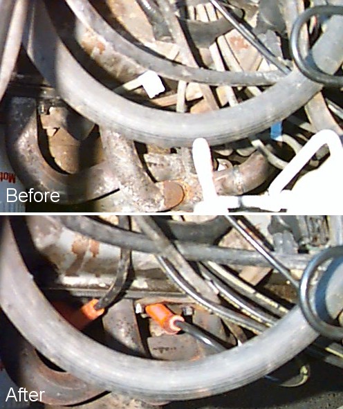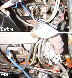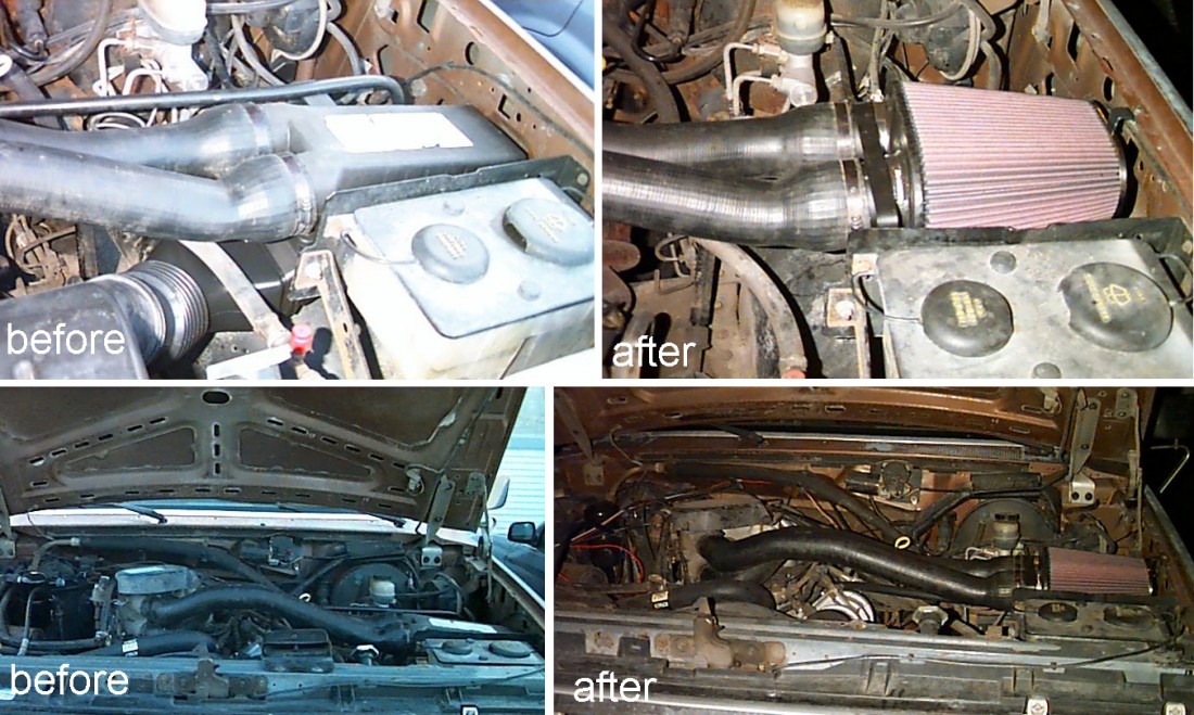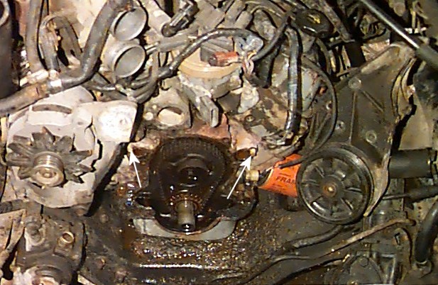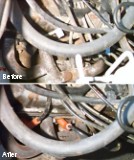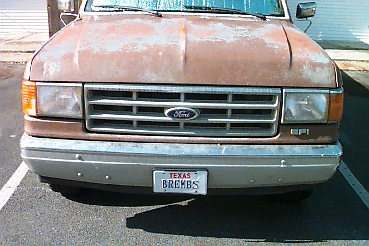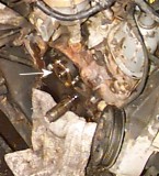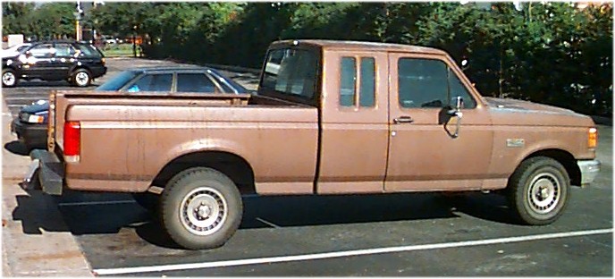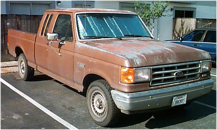 Ford F-150 PU I bought this car in Houston, Texas in April 2000. It's a 1988 Ford F-150 Pickup Truck with the 5.0l (302ci) V8 engine (EFI, 185hp). April 2000: The cab was in pretty bad shape when I bought it. I had to replace the floor carpet, the front seat bench and the driver's seat belt. May 2000: As one of the stock exhaust manifolds was cracked, I installed a set of Pacesetter headers. The rest of the exhaust system was pretty run down, too, so I had to get a new set of pipes, a new cat and a muffler. June 2000: It also needed new shocks, some power steering seals and the entire airconditioning had to be replaced (can't live without that, here in Houston). So far, the engine seems to be fine, though. You can tell, it needs a paint-job, too <g>. Aren't personalized licence plates hilarious on a wreck like this? September 2000: I added a larger mirror because of the huge blindspots. Overhead storage was also insufficient, so I got something for that, too. November 2000: Besides the 'Ranch Hand' bumper from the previous owner, it now also has a new water pump, oxygen sensor and a K&N drop in airfilter. Together with the K&N filter I also changed the airbox and air intake duct. As it got colder, the belt started to squeal, so I went to the wreckers and got a tensioner, too. December 2000: I disassembled throttle body and intake manifold to gain access to the passenger's side valve cover. After thoroughly cleaning throttle body and upper plenum from carbon deposits, I replaced the leaky valve cover gasket. In the course of the reassembly I also replaced some old and porous coolant hoses, retorqued the driver's side valve cover bolts and all exhaust header bolts. I installed the Accel 300+ Racing Wires (see above images), Accel Super Coil, Bosch +4 Platinum spark plugs (see below images), and an Accel Distributor Cap and Rotor Kit. January 2001: Replaced the front brake pads and had the rotors resurfaced. Had the rear wheel cylinders and shoes replaced as well. All new brakes now on all four wheels. March 2001: Installed an MSD 6a ignition control unit. For some strange reason the unit would only work if hooked up directly to the battery posts. The MSD rounds off the complete upgrade of the entire ignition system. May 2001: As the power steering gearbox has started leaking again I decided it's time to finally put in a new one. At the occasion, I also changed the dual tank selector valve (diaphragm was ruptured), the fuel filter, the serpentine belt and checked/set the timing (10° BTDC). I also got a new instrument cluster with a tachometer and a trip-odometer. The only problem was to get the odometer readings identical: I had that fixed by a local speedometer shop. September 2001: I decided to get rid of the restrictive snorkel and airbox altogether and installed a K&N FIPK. November 2001: After the problem with the starter being slow when the engine is hot got worse and worse, I decided to get a new starter. December 2001: I finally fixed the clutch that had been leaking since I bought the truck. Unfortunately, the slave cylinder was the culprit, it was leaking much worse than the master cylinder. That meant I had to unbolt the transmission to replace the slave cylinder in the bell-housing. I used the opportunity to re-seal the transmission upper and extension housing seal and change the transmission oil to Mobil 1 synthetic. January 2002: The timing chain cover has started leaking coolant. I took the opportunity to change the chain to a true roller chain and add a block protector kit while I was in there anyway. It turned out that the reason for the leaking timing cover were two broken bolts at the main cooolant passages (arrows). The old chain was also slightly stretched. We had to use the 'heat-wrench' to get the seized bolts out of the timing cover and block (the guy with the torch is my friendly mechanic Carlos who helps me out if I need his skills and tools to do the job). Luckily, the bolts came out and we had no further difficulties installing the new parts and re-assembling everything. The left picture shows the block protector installed and the right one the new chain. Since I had to pull everything off the front of the engine, I've installed an electric fan as well. I have a separate page showing the electric fan installation. August 2002 : I installed a new intake featuring Bosch Design III injectors, a Lightning throttle body and mass-air conversion with a 80mm Pro-M mass-air meter. You can see the in-depth description of that project on my MAF conversion page.