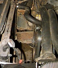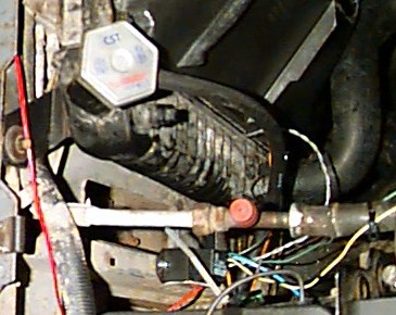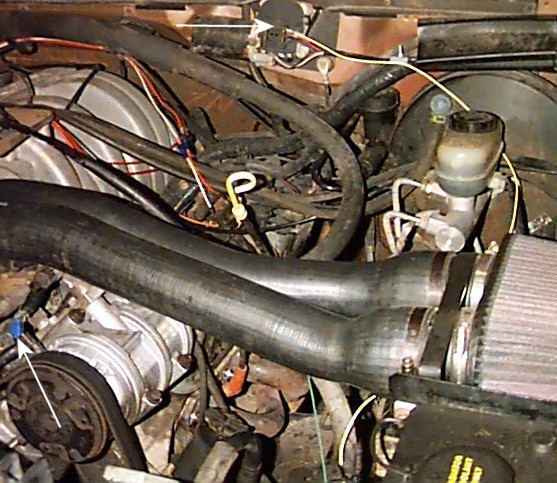 any fan... I mounted the controller on the driver's side, right next to the radiator. Just below the radiator I drilled a hole for the ground wires from the controller and the fan. The temperature sensor was installed to the exit of the radiator, so it would measure the temperature of the water entering the engine. I took the ignition signal from the wiper motor (upper arrow, right image) and the A/C clutch switch spliced right into the positive A/C clutch wire with a splicer that came with the Hayden controller (lower arrow, right image). I've reset my computer and will see how the performance will be. One thing's definitely sure: The truck is MUCH quieter now and overall runs smoother.